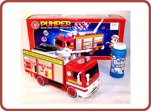The fire truck requires 3 x AA batteries (not included) and comes complete with a 120ml bottle of bubble solution.