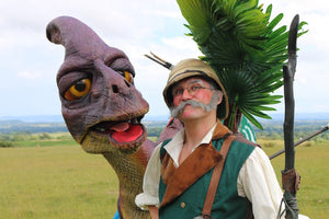 Meet the adventurer Captain Jon Voyage and his beautiful dinosaur, Odysseia the Parasaurolophus, torn from the pages of a Boy's Own adventure and shipwrecked on our shores. Help the captain as he studies his map in an attempt to return the beast to the late Cretaceous period of The Land that Time Forgot. Failing that, simply make friends with Odysseia and help her understand that not all humans are barbaric cavemen & women. Whether you join them on their quest or pose for a selfie, you are sure to have a Jurassic lark!