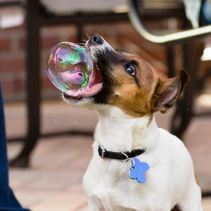 A must-have, interactive toy for dogs, these bacon-scented bubbles are sure to get him out of his basket and tail wagging! Use with a wand, bubble gun or bubble machine to create a delightful shower of fun for your pooch to jump at, chase after and pop! The bubble mix is safe and non-toxic so you can happily blow the bacon bubbles indoors, providing your dog with exercise and play in the comfort of your own home!