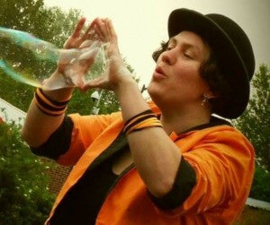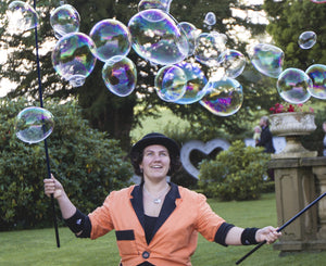 Miss Bubblicious is one of our northern Bubbleologists, but travels all over the world, so whether she's entertaining at a birthday party in Yorkshire or a corporate event in Cyprus, with her great mixture of bubble expertise and cheeky grin, she is fabulous at getting everyone into the party atmosphere. She can entertain your friends with her bubble tricks, close-up bubble fun, put you inside a giant bubble, and have kids and adults making giant bubbles before you can say "Bubbleologist!"
