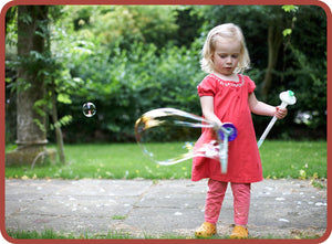 It’s so much fun and easy to use, in no time you’ll be doing bubble tricks and making bubbles inside bubbles and Loch Ness bubbles, just like SamSam Bubbleman! For the best and biggest bubbles, you need a super-strength solution! Use our Guinness World Record-holding bubble solution ‘Supapop’ and we guarantee massive bubbles and happy smiles!