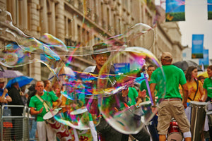 2) "We really loved having him perform at the festival over the weekend - there has been some great feedback! The Bubbleman worked brilliantly in the overall event, and made the kids incredibly happy! There were lots of squeals of joy coming from wherever the bubbles were! It was great!" Blackheath Festival